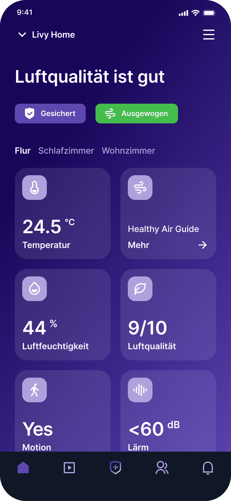 Mit der Livy Care App haben Sie alle Räume immer im Blick.